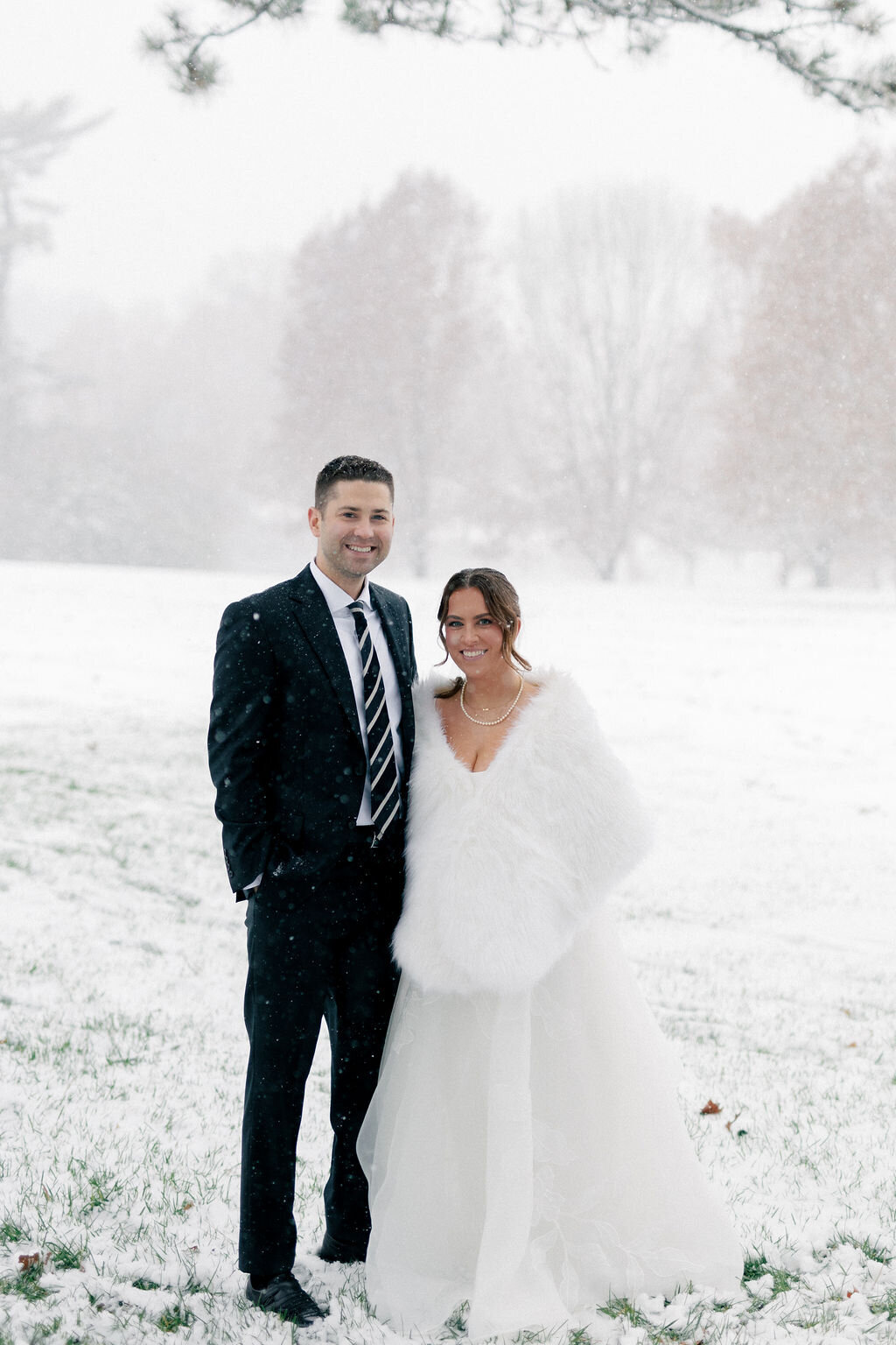 The bride and groom, childhood friends since elementary school, always dreamed of a wedding with a bold, eclectic flair. Their Thanksgiving weekend celebration unfolded in the enchanting Jewel Box, a historic greenhouse nestled in the heart of St. Louis. With palm trees surrounding them, the bride chose vibrant hues and tropical florals, creating a striking contrast against the unexpected snowfall that graced the day. The delicate snow outside, paired with the warmth inside, set the stage for a perfect blend of beauty, whimsy, laughter, and love.
